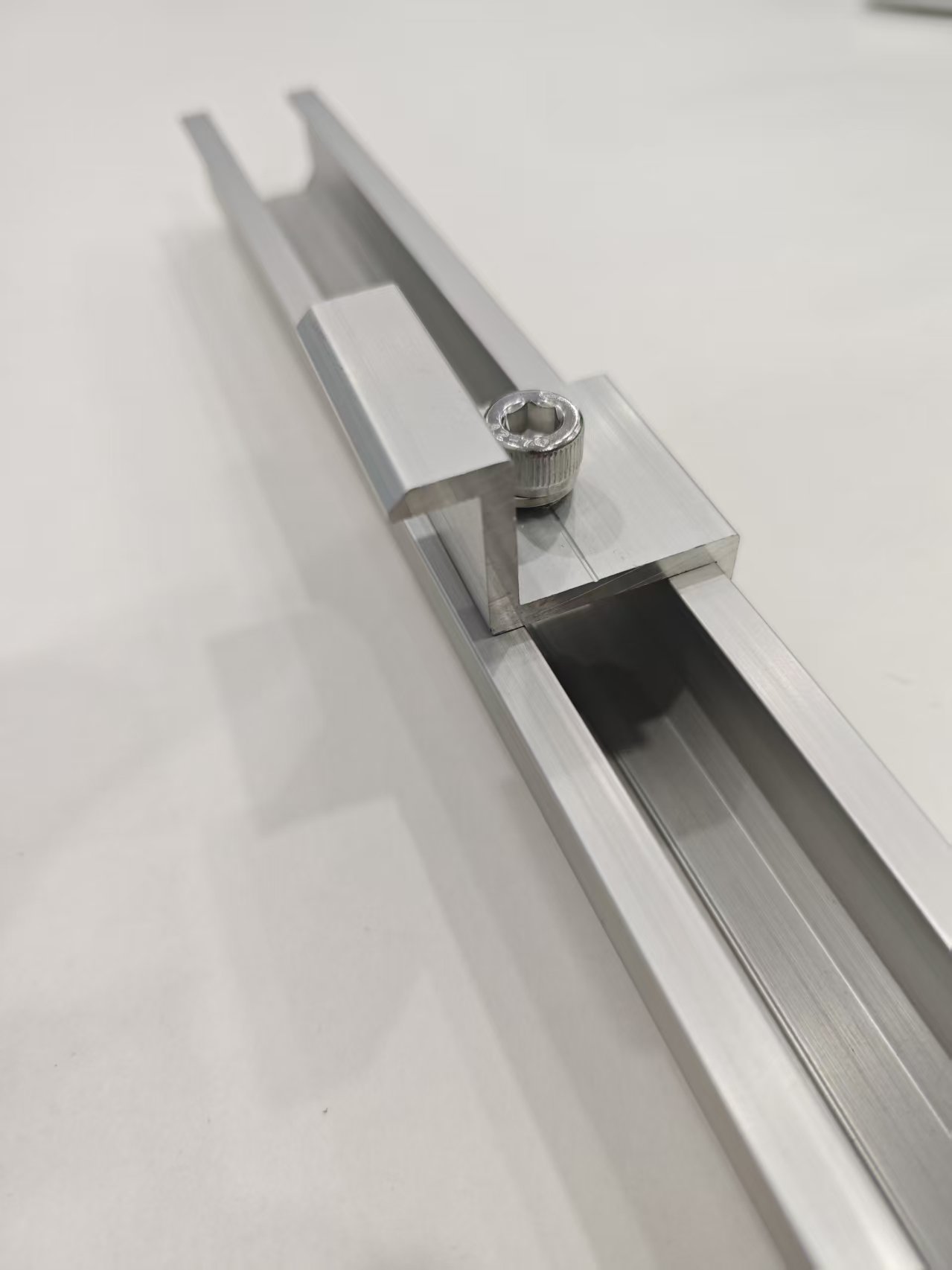 Должината на алуминиумските соларни мини шини е значително пократка од стандардните шини, па оттука и името мини шини. Специјално дизајниран за фотоволтаични системи за монтирање на покривот, тој е исклучително лесен, што значително го намалува притисокот врз структурата на покривот. Неговиот уникатен дизајн во форма на буквата У овозможува прицврстување на фотоволтаичните панели на шината само со крајна клешта или средна клешта, што ја прави инсталацијата неверојатно едноставна и значително ги скратува временските рокови на проектот.