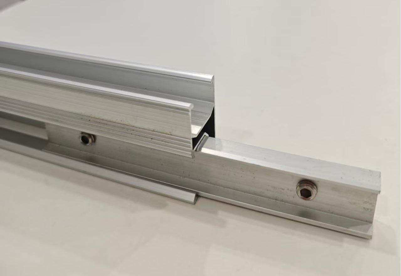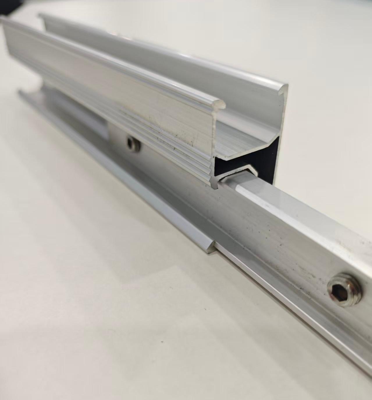 Инсталирањето на соларните алуминиумски R шини е исклучително едноставно, особено кога се поврзуваат две шини. Едноставно вметнете го конекторот во страничниот отвор и затегнете ги завртките надолу. Уникатниот дизајн на конекторот обезбедува безбедно заклучување на своето место. Потоа инсталирајте ја другата шина користејќи го истиот метод за да ја завршите врската